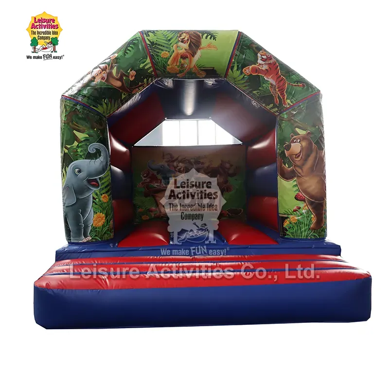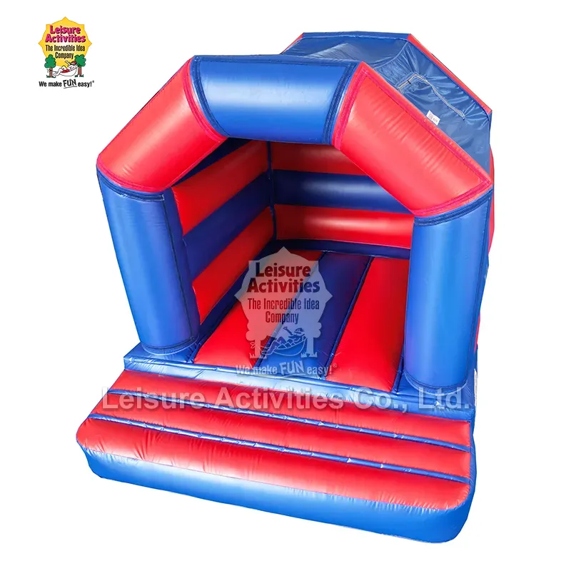 Mini Inflatable Bouncy Castle A Frame Red Blue With Roof είναι κατάλληλο τόσο για εσωτερικές όσο και για υπαίθριες εκδηλώσεις, το bouncy castle περιλαμβάνει μια ενσωματωμένη οροφή για προστασία από τον ήλιο και την ελαφριά βροχή. Κατασκευασμένο από εμπορικής ποιότητας, επιβραδυντικό φωτιάς, βινύλιο PVC χωρίς μόλυβδο, το προϊόν είναι κατασκευασμένο για ασφάλεια και ανθεκτικότητα. Περιλαμβάνει ενισχυμένα σημεία τάσης και διπλή ή τετραπλή ραφή στις ραφές.